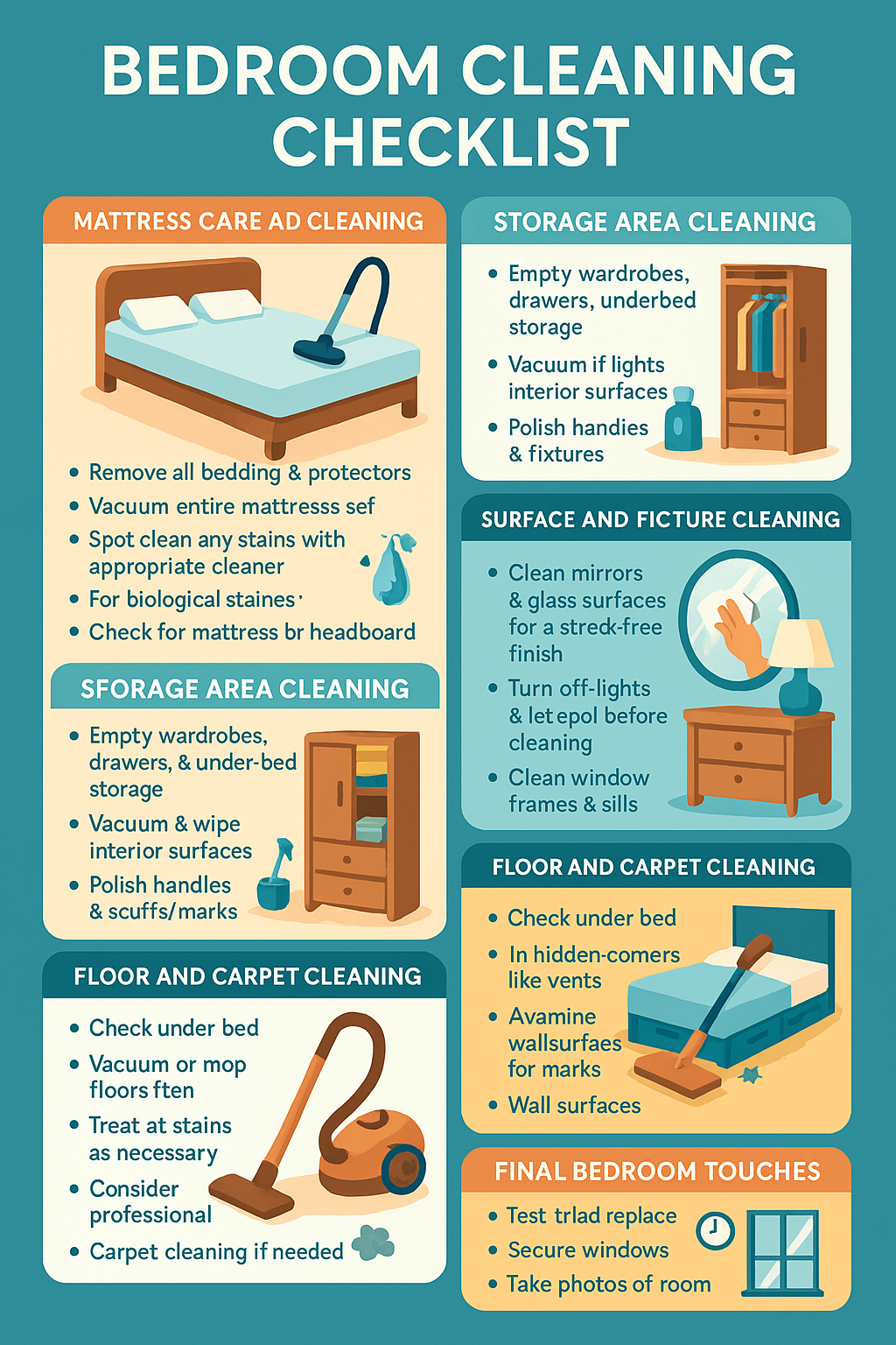 - Vacuum or mop floors one final time after all other cleaning is complete