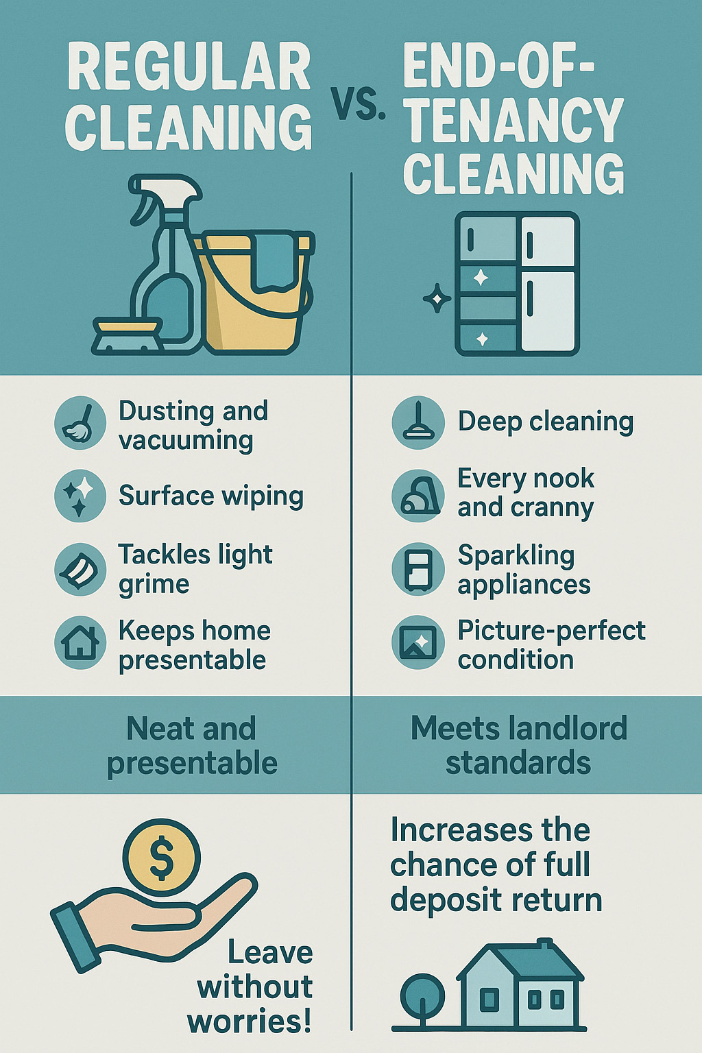 How does regular cleaning differ from end-of-tenancy cleaning?